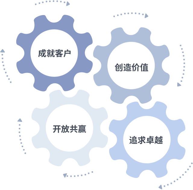 成就客户是一切决策的出发点,创造价值是衡量所有工作的标准,追求卓越是好友娱乐做事做人的态度,开放共赢是好友娱乐的格局也是最终的结果。价值观的齿轮环环相扣,推动着组织里的每个人不断向前。